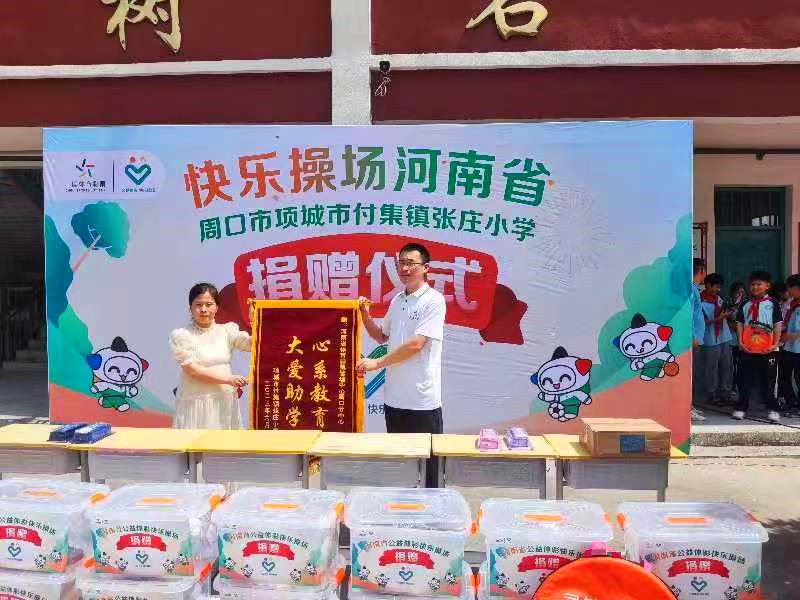 “公益體彩獻愛心,快樂操場進校園”。6月20日,“公益體彩 快樂操場”走進項城市付集鎮(zhèn)張莊小學開展公益捐贈活動。學校負責人將錦旗送到周口體彩分中心副主任孫海永手中,對該中心的善舉表達了衷心感謝。