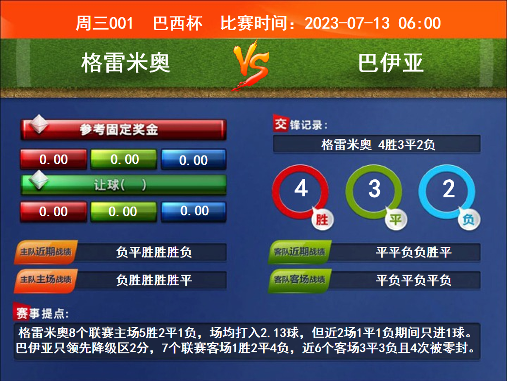 周三001 巴西杯 格雷米奧VS巴伊亞
