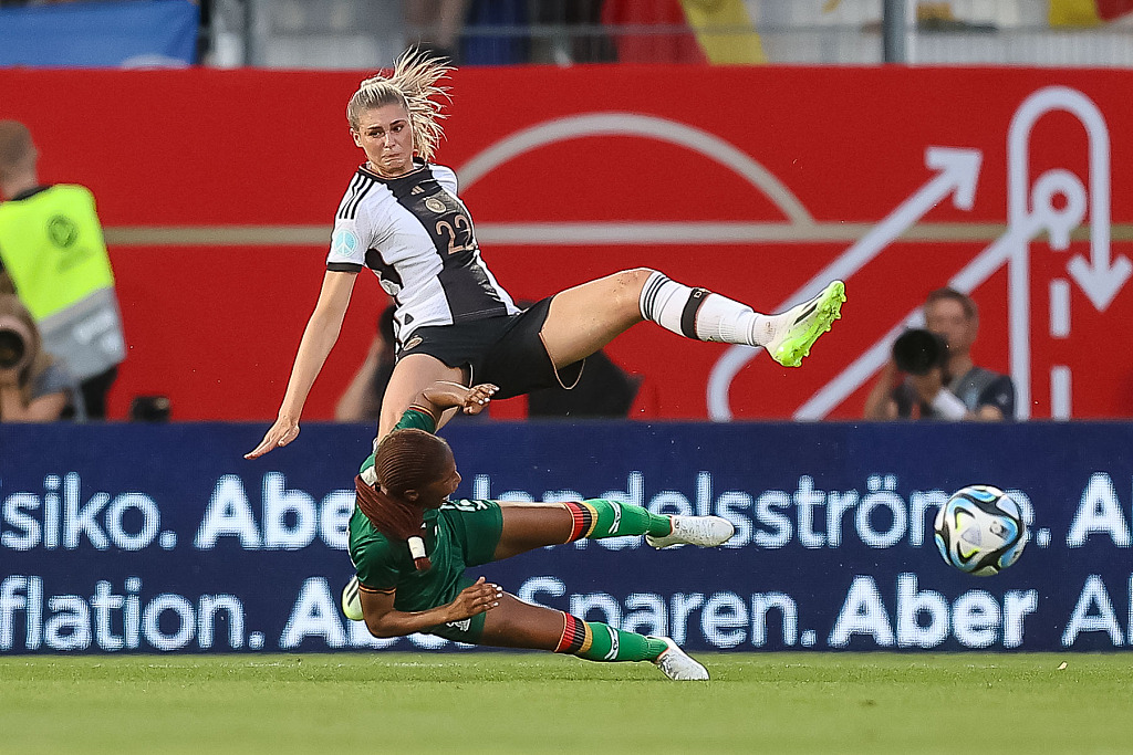 德國女足是傳統(tǒng)強隊,曾在2003和2007兩屆世界杯上奪冠,去年該隊奪得女足歐洲杯亞軍,最近3屆世界杯都能起碼打入8強,是本屆奪冠熱門。本屆德國女足由老將波普出任隊長,此前她已參加3屆世界杯,經(jīng)驗老道,已經(jīng)為國家隊打入超過60球,是球隊定海神針。同時這支德國女足年輕化進程力度相當(dāng)大,本屆僅有5名球員超過30歲。這也導(dǎo)致球隊存在一定不穩(wěn)定性。在今年參加的5場熱身賽中,德國女足取得2勝1平2負,表現(xiàn)平平。期間既有擊敗荷蘭女足的高光表現(xiàn),也曾在月初不敵贊比亞女足,爆出冷門。