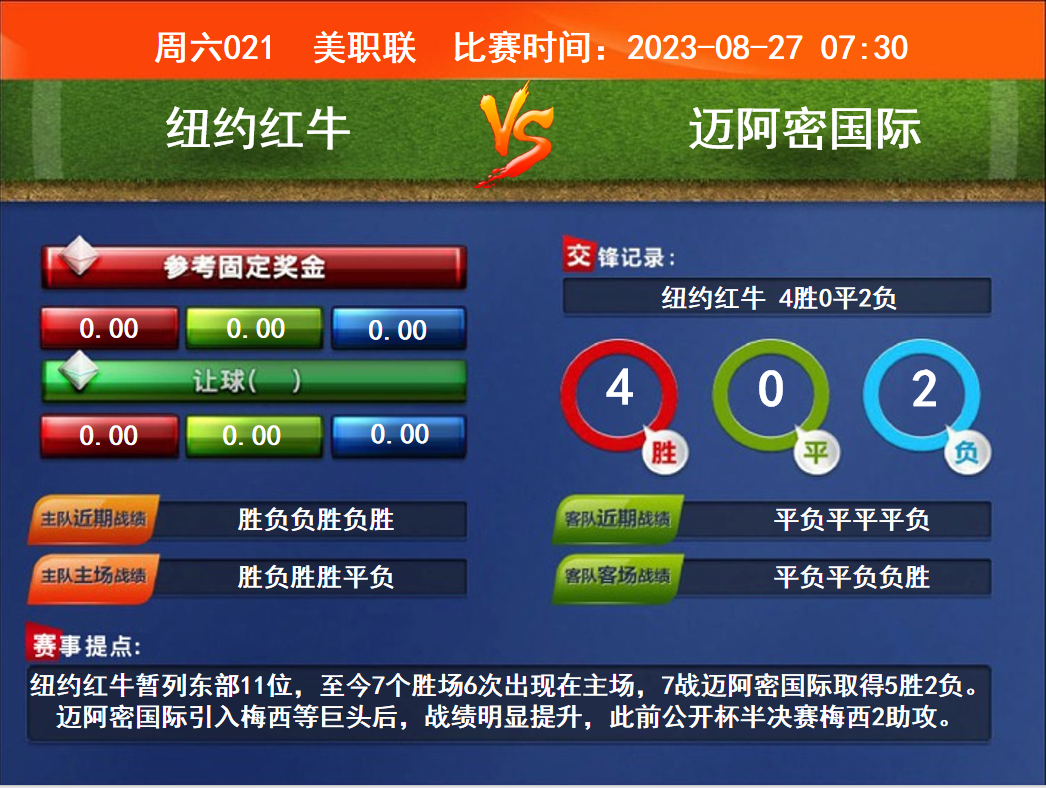 周六021 美職聯(lián) 紐約紅牛VS邁阿密國(guó)際