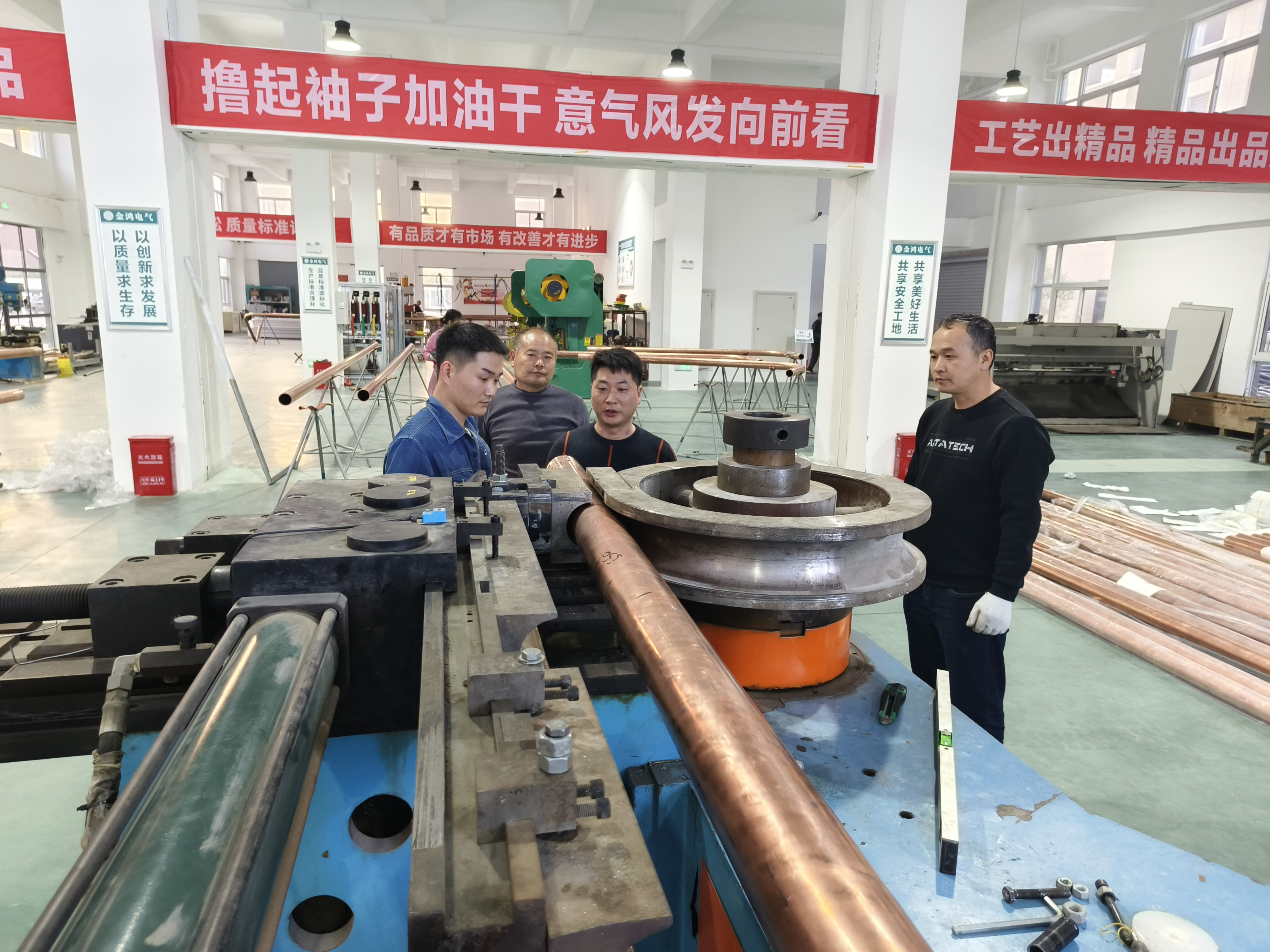 10月26日21時(shí),臨港開(kāi)發(fā)區(qū)中興新業(yè)港產(chǎn)業(yè)園內(nèi),河南金鴻電氣有限公司(以下簡(jiǎn)稱(chēng)金鴻電氣)生產(chǎn)車(chē)間燈光明亮,十多位技術(shù)工人加班加點(diǎn),趕制重慶鋼廠訂購(gòu)的一批絕緣銅管母線,11月初,這筆產(chǎn)品必須完成、送到。金鴻電氣總經(jīng)理苑福來(lái)說(shuō):“今年工廠邊建設(shè)邊生產(chǎn),預(yù)計(jì)年產(chǎn)值能達(dá)到1億元,為明年產(chǎn)能擴(kuò)張打下基礎(chǔ)。”