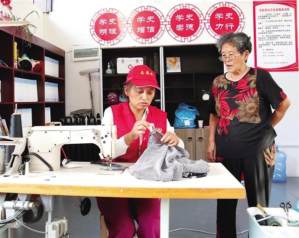 “家里的舊衣服千萬別扔,我給大家修修還能穿。雖然現(xiàn)在咱們的日子越來越好,但也應該注意節(jié)省……”8月3日,在中心城區(qū)文明路道德書屋,志愿者趙秋霞一邊忙著為市民縫補衣物,一邊和市民聊天。
