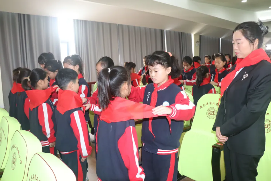 儀式上,該校副校長肖東旭宣布新隊(duì)員名單,230名同學(xué)加入中國少年先鋒隊(duì),成為一名光榮的少先隊(duì)員。緊接著,四年級優(yōu)秀隊(duì)員代表莊重地為新隊(duì)員代表系上鮮艷的紅領(lǐng)巾。在大隊(duì)長的帶領(lǐng)下,全體隊(duì)員在隊(duì)旗下莊嚴(yán)宣誓。少先大隊(duì)委員熱烈歡迎新隊(duì)員加入。