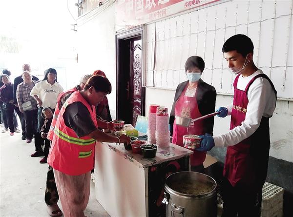 10月10日,重陽(yáng)節(jié)前夕,清晨第一縷陽(yáng)光灑向大地,錢廣新已經(jīng)忙碌起來(lái),在他和廚師的精心準(zhǔn)備下,一鍋鍋熱氣騰騰、香氣四溢的綠豆面條端了出來(lái)。錢廣新一邊熱情地招呼老人排隊(duì),一邊動(dòng)手盛飯,微笑掛在嘴角,快樂(lè)寫(xiě)在臉上。