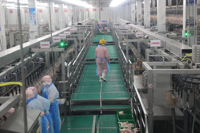 在西華雙匯1億只肉雞產(chǎn)業(yè)化項(xiàng)目的配套子項(xiàng)目西華雙匯宰雞廠中,全程使用高效自動化生產(chǎn),清潔高效、分割精準(zhǔn)。