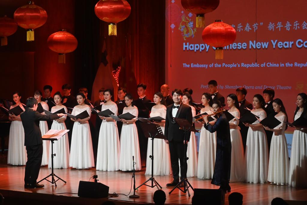 作為西班牙馬德里“歡樂春節(jié)”系列慶祝活動(dòng)的一部分,“中國(guó)新春音樂會(huì)”日前在馬德里國(guó)家音樂廳舉行。從《陽(yáng)關(guān)三疊》等中國(guó)詩(shī)詞合唱作品,到《敖包相會(huì)》《茉莉花》等中國(guó)民歌,再到《飲酒歌》等西方音樂選段,深圳歌劇舞劇院合唱團(tuán)與民樂演奏家合力獻(xiàn)上一臺(tái)融合中西經(jīng)典曲目的音樂會(huì)。