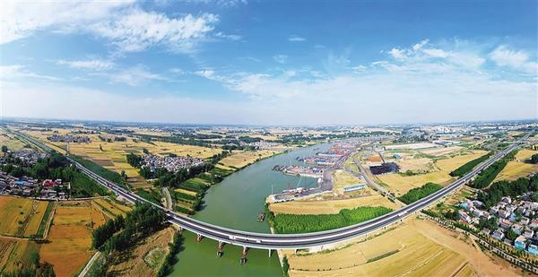5月27日,周口港中心港區(qū)在碧水、藍(lán)天、白云、金色麥浪、秀美村莊的映襯下,顯得十分壯美。近年來(lái),我市利用水陸交通優(yōu)勢(shì),加快構(gòu)建“鐵公機(jī)水”多式聯(lián)運(yùn)體系,努力從“經(jīng)濟(jì)通道”邁向“通道經(jīng)濟(jì)”。