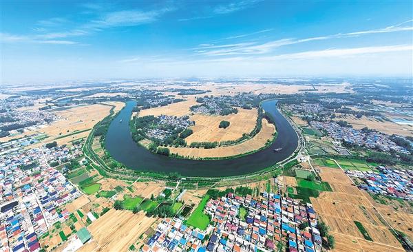 6月6日上午,在川匯區(qū)官坡村西側(cè),兩艘貨船沿沙河西行。沙河在這里繞了個(gè)彎,藍(lán)天下,碧水、貨船、村莊、農(nóng)田宛如一幅油畫,格外美麗,展現(xiàn)了中原港城周口的生態(tài)之美。