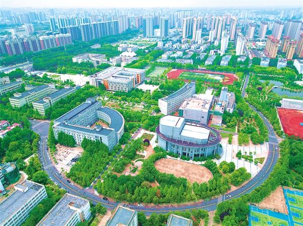 六月二十四日上午,鳥瞰周口師范學(xué)院校區(qū),曲折小道環(huán)抱音樂廳、大禮堂、圖書館等建筑,宛若一把巨大的琵琶,在中心城區(qū)奏響文明發(fā)展進(jìn)行曲。