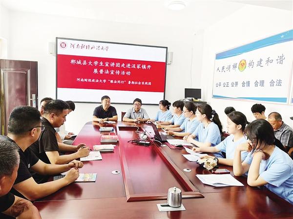 本報訊 (記者 徐松 通訊員 邢佰強 翟玥 趙坤哲 文/圖) 為推動法治鄉(xiāng)村建設,7月11日,鄲城縣委宣傳部和縣司法局組織法律專業(yè)大學生成立宣講團,到汲冢鎮(zhèn)開展普法宣傳活動。大學生志愿者走進田間地頭,把“法言法語”化為“鄉(xiāng)音鄉(xiāng)語”,為法治鄲城建設注入了青春活力。