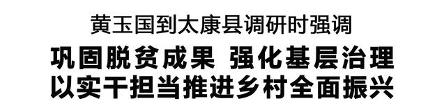 本報(bào)訊 (記者 王艷) 12月7日,市委書(shū)記黃玉國(guó)到太康縣調(diào)研基層治理、鞏固拓展脫貧攻堅(jiān)成果同鄉(xiāng)村振興有效銜接等工作,強(qiáng)調(diào)要深入學(xué)習(xí)貫徹黨的二十屆四中全會(huì)精神和習(xí)近平總書(shū)記關(guān)于河南工作的重要論述,認(rèn)真落實(shí)省委十一屆十次全會(huì)部署,堅(jiān)持學(xué)思想、講協(xié)同、抓落實(shí),以黨建引領(lǐng)基層高效能治理,以精準(zhǔn)舉措鞏固拓展脫貧攻堅(jiān)成果,以實(shí)干擔(dān)當(dāng)推進(jìn)鄉(xiāng)村全面振興,持續(xù)增強(qiáng)人民群眾的獲得感、幸福感、安全感。