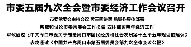 本報(bào)訊 (記者 王艷 李鳳霞 王晨) 12月28日,中國共產(chǎn)黨周口市第五屆委員會(huì)第九次全體會(huì)議暨市委經(jīng)濟(jì)工作會(huì)議召開。
