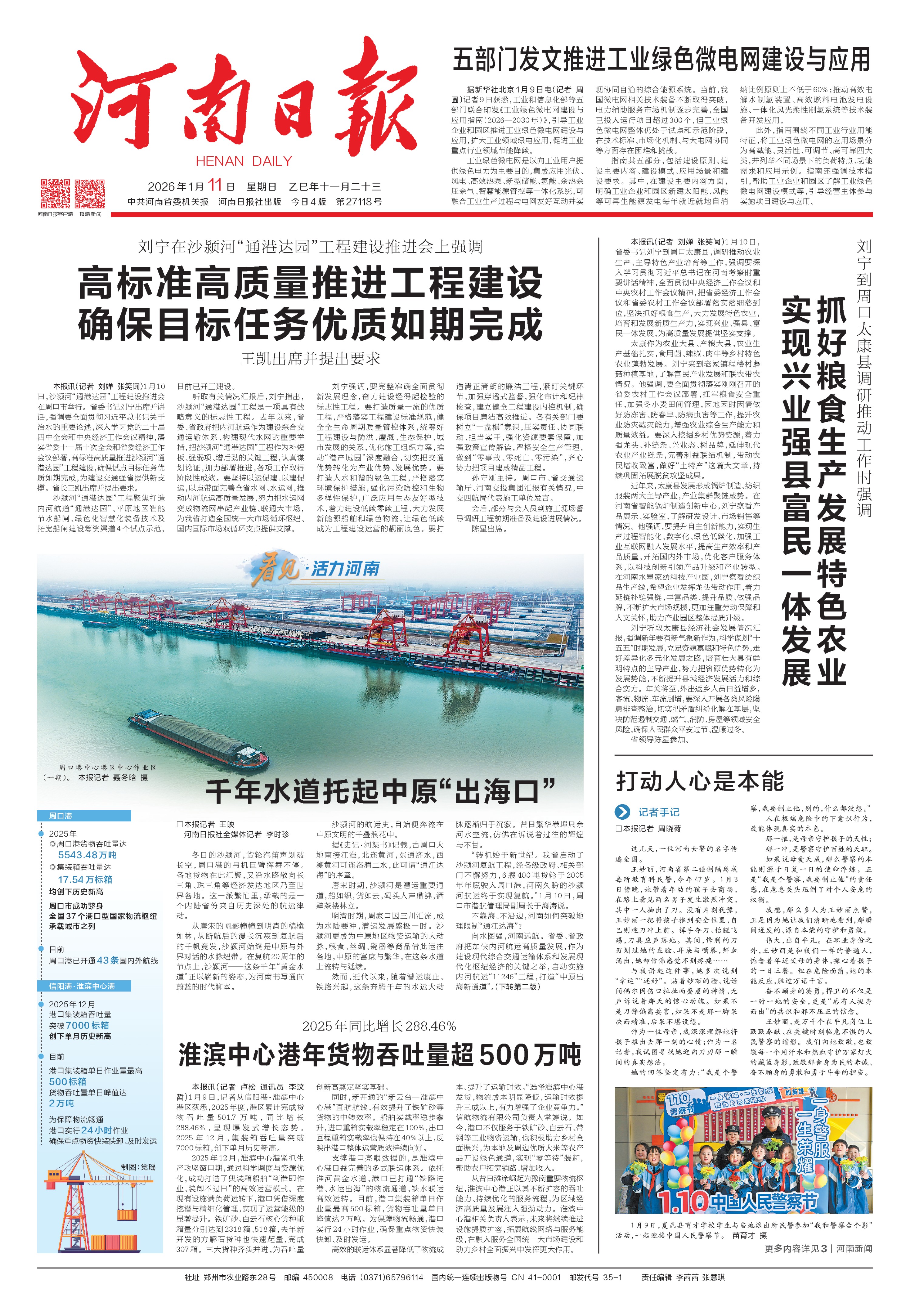 漯河港、平頂山港相繼開(kāi)港運(yùn)營(yíng);周口港中心港區(qū)中心作業(yè)區(qū)一期工程去年年底建成投用,標(biāo)志著河南內(nèi)河集裝箱運(yùn)輸邁入“百萬(wàn)標(biāo)箱時(shí)代”;沙潁河“通港達(dá)園”工程開(kāi)工建設(shè),進(jìn)一步完善我省水運(yùn)網(wǎng)絡(luò),服務(wù)和融入新發(fā)展格局。