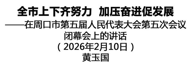 會(huì)議期間,各位代表以飽滿的政治熱情、強(qiáng)烈的責(zé)任擔(dān)當(dāng),依法履職盡責(zé)、積極建言獻(xiàn)策,審議通過了政府工作報(bào)告、“十五五”規(guī)劃綱要和其他各項(xiàng)報(bào)告文件,順利完成了各項(xiàng)選舉任務(wù)。會(huì)議開得很成功,是一次高舉旗幟、牢記囑托的大會(huì),是一次集思廣益、民主團(tuán)結(jié)的大會(huì),是一次振奮人心、催人奮進(jìn)的大會(huì),必將鼓舞全市人民以更加堅(jiān)定的信心、更加昂揚(yáng)的斗志,奮力譜寫中原大地推進(jìn)中國(guó)式現(xiàn)代化周口新篇章。在此,我代表中共周口市委,向會(huì)議的成功召開表示熱烈祝賀!向各位代表和全體工作人員的辛勤付出表示衷心感謝!