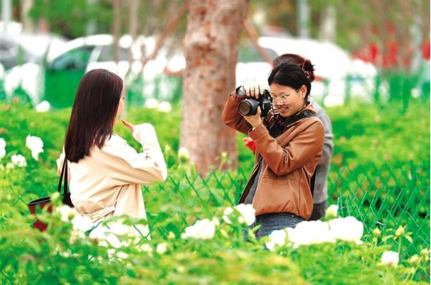 清明小長假期間,周口植物園內(nèi)牡丹競相綻放,粉、白、紫、紅、黃等各色牡丹嬌艷欲滴,吸引市民紛至沓來,在花海中打卡拍照,享受春日休閑時光。