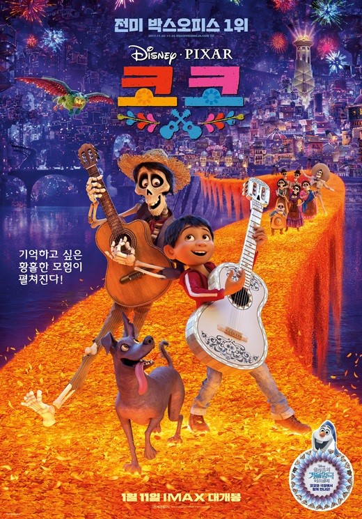 美國(guó)動(dòng)畫(huà)電影《尋夢(mèng)環(huán)游記》昨天在韓國(guó)上映,創(chuàng)下了超過(guò)10萬(wàn)人的首映觀(guān)影人數(shù)?!?a href="http://m.goldentc.com/content/2018-01/15/content_802168.htm" target="_blank" >[詳細(xì)]