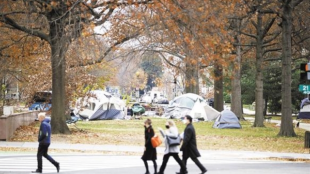 12月8日,在美國(guó)華盛頓,行人經(jīng)過(guò)無(wú)家可歸者居住的帳篷。……[詳細(xì)]