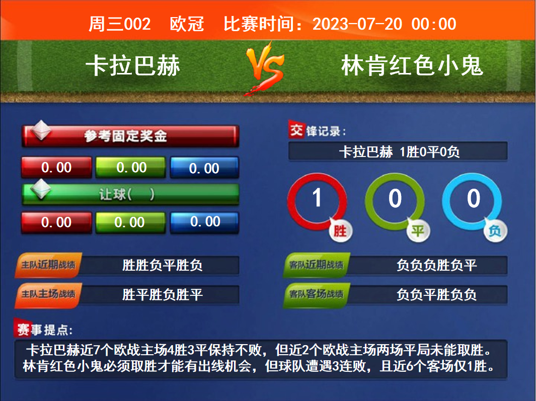 周三競(jìng)彩足球強(qiáng)檔:卡拉巴赫掌主動(dòng)權(quán) 利勒切菜穩(wěn)定