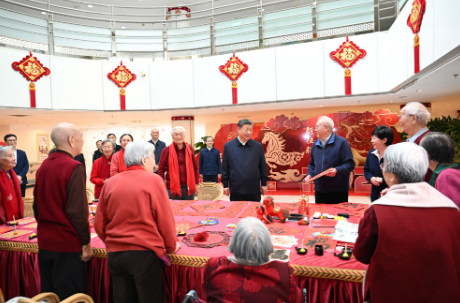 春節(jié)前夕,中共中央總書記、國家主席、中央軍委主席習(xí)近平等黨和國家領(lǐng)導(dǎo)人分別看望或委托有關(guān)方面負(fù)責(zé)同志看望了胡錦濤、朱镕基、李瑞環(huán)、溫家寶、賈慶林、張德江、俞正聲、栗戰(zhàn)書、汪洋、宋平、李嵐清、曾慶紅、吳官正、李長春、羅干、賀國強(qiáng)、劉云山、王岐山、張高麗和田紀(jì)云、遲浩田、王樂泉、王兆國、回良玉、劉淇、吳儀、曹剛川、曾培炎、王剛、劉延?xùn)|、李源潮、馬凱、孫春蘭、李建國、范長龍、孟建柱、郭金龍、王晨、劉鶴、楊潔篪、楊曉渡、陳全國、郭聲琨、王漢斌、何勇、杜青林、趙洪祝、尤權(quán)、李鐵映、許嘉璐、蔣正華、顧秀蓮、盛華仁、路甬祥、華建敏、陳至立、司馬義·鐵力瓦爾地、蔣樹聲、王勝俊、陳昌智、嚴(yán)雋琪、張平、向巴平措、張寶文、曹建明、張春賢、吉炳軒、艾力更·依明巴海、萬鄂湘、陳竺、白瑪赤林、唐家璇、戴秉國、常萬全、趙克志、韓杼濱、賈春旺、宋健、胡啟立、王忠禹、李貴鮮、郝建秀、徐匡迪、張懷西、李蒙、廖暉、白立忱、陳奎元、阿不來提·阿不都熱西提、李兆焯、黃孟復(fù)、張梅穎、張榕明、錢運(yùn)錄、孫家正、李金華、鄭萬通、鄧樸方、厲無畏、陳宗興、王志珍、韓啟德、林文漪、羅富和、李海峰、陳元、周小川、王家瑞、齊續(xù)春、馬培華、劉曉峰、王欽敏、張慶黎、劉奇葆、董建華、萬鋼、盧展工、王正偉、馬飚、陳曉光、楊傳堂、李斌、汪永清、辜勝阻、劉新成等老同志,向他們致以誠摯的節(jié)日問候,衷心祝愿他們新春愉快、健康長壽。