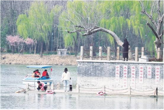 3月19日,沈丘縣中華槐園內(nèi)綠意盎然、景色宜人。市民趁著晴好天氣走出家門,漫步園區(qū),拍照留影、休閑散心,盡享春日愜意時(shí)光。