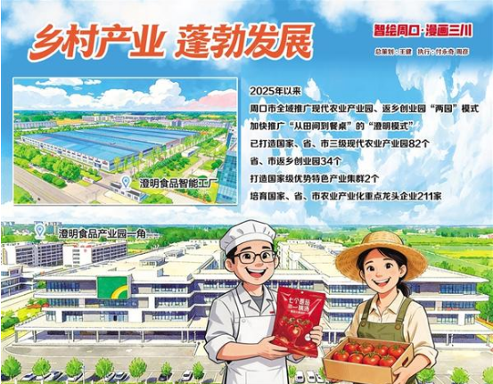 2025年以來,周口市統(tǒng)籌發(fā)展農(nóng)產(chǎn)品初加工、精深加工和綜合利用加工,全域推廣現(xiàn)代農(nóng)業(yè)產(chǎn)業(yè)園、返鄉(xiāng)創(chuàng)業(yè)園“兩園”模式,加快推廣“從田間到餐桌”的“澄明模式”,不斷提升鄉(xiāng)村產(chǎn)業(yè)發(fā)展質(zhì)效,已打造國(guó)家、省、市三級(jí)現(xiàn)代農(nóng)業(yè)產(chǎn)業(yè)園82個(gè),省、市返鄉(xiāng)創(chuàng)業(yè)園34個(gè),打造國(guó)家級(jí)優(yōu)勢(shì)特色產(chǎn)業(yè)集群2個(gè),培育國(guó)家、省、市農(nóng)業(yè)產(chǎn)業(yè)化重點(diǎn)龍頭企業(yè)211家。