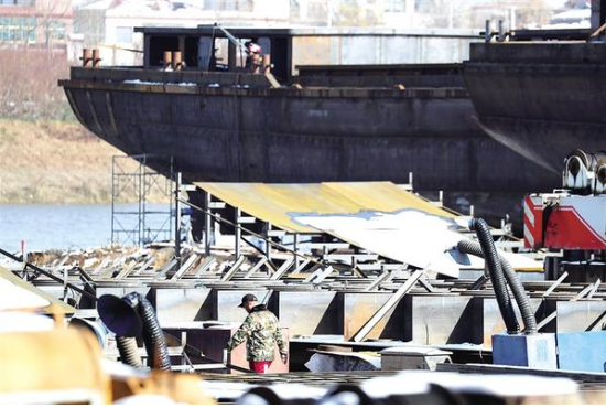 12月14日,周口某造船廠內(nèi),工人們正在緊張作業(yè)。依托沙潁河千噸級(jí)航道優(yōu)勢(shì),周口造船業(yè)蓬勃發(fā)展,2000噸級(jí)貨船訂單覆蓋蘇、皖、浙等地?!爸芸谠臁必洿瑥纳碀}河啟航,通江達(dá)海,為港城融合發(fā)展注入強(qiáng)勁動(dòng)力。