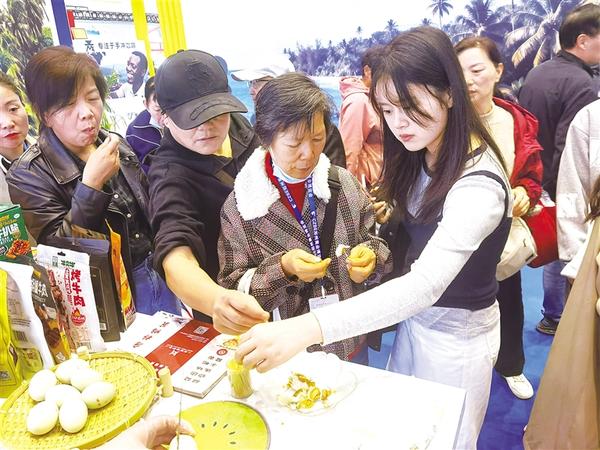 群眾在品嘗“唐橋鴨蛋”。近日,在第十二屆中原文化產(chǎn)業(yè)博覽交易會(huì)上,鄲城縣非遺產(chǎn)品“唐橋鴨蛋”榮獲展覽展示獎(jiǎng)。該產(chǎn)品由閆振宇、閆路父女傳承推廣,此次獲獎(jiǎng)?wù)蔑@了傳統(tǒng)技藝在現(xiàn)代的創(chuàng)新活力。