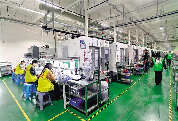 位于西華縣的昌盛年產(chǎn)2000萬(wàn)套智能零部件項(xiàng)目,主要生產(chǎn)手機(jī)、電腦配套五金和納米注塑制品。目前該項(xiàng)目已投產(chǎn)試運(yùn)營(yíng),項(xiàng)目全部投產(chǎn)達(dá)效后,將實(shí)現(xiàn)年納稅500萬(wàn)元以上,帶動(dòng)就業(yè)800人以上。圖為工人正在加工訂單產(chǎn)品。