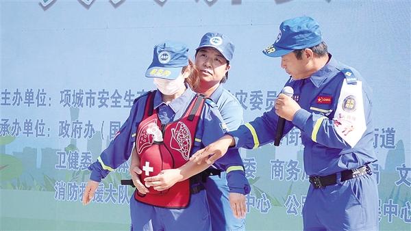 6月16日,項城市舉行“安全宣傳咨詢?nèi)铡被顒?。活動設(shè)置警示教育片展播、應(yīng)急技能演示、救援裝備展示、安全咨詢等環(huán)節(jié)。圖為項城應(yīng)急藍天救援隊3名隊員演示海姆立克急救法操作流程。