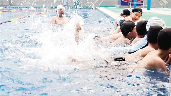 學(xué)生在教練的指導(dǎo)下進(jìn)行游泳訓(xùn)練。近日,項(xiàng)城市清華育英學(xué)校將防溺水課堂“搬”進(jìn)游泳館,開展“沉浸式”防溺水安全教育活動(dòng)。