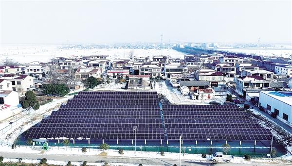 雪后的鄲城縣汲冢鎮(zhèn)謝寨村,連片的光伏板在暖陽下熠熠生輝。