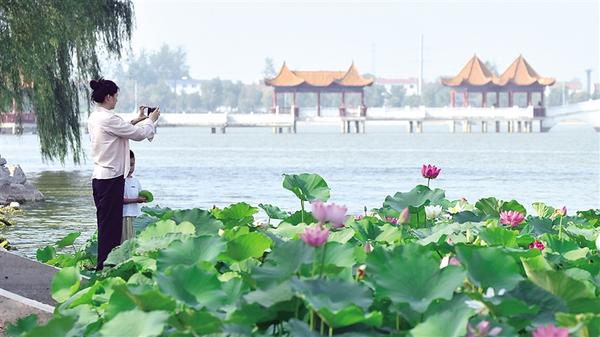6月15日,在淮陽龍湖國家濕地公園,一朵朵盛開的荷花嬌艷欲滴,這是今夏龍湖首批綻放的荷花。