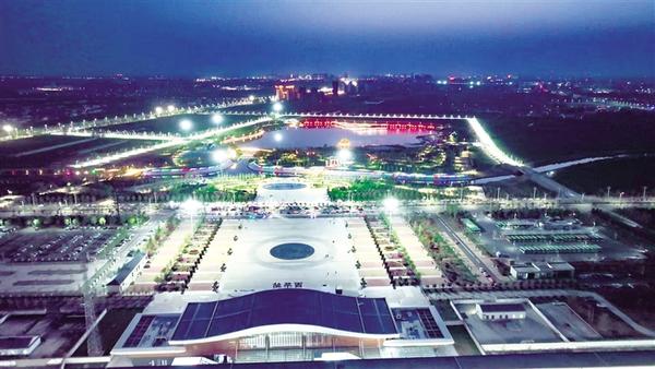 華燈初上,西華高鐵站夜景如畫。站前廣場(chǎng)布局規(guī)整,彩色鋪裝、圓形圖案兼具美觀與實(shí)用性,優(yōu)化人流集散。