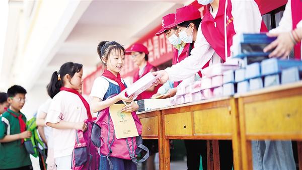 5月22日,扶溝縣江村鎮(zhèn)張龐小學(xué)的學(xué)生領(lǐng)到“六一”禮物。“六一”兒童節(jié)前夕,扶溝縣委宣傳部聯(lián)合我市一家教育公司走進(jìn)扶溝縣江村鎮(zhèn)張龐小學(xué),開展“愛心牽手 情暖童心”迎“六一”愛心捐贈(zèng)活動(dòng),為該校50名留守兒童送去價(jià)值4600元的書包、筆、本、文具盒等物品及節(jié)日的祝福。
