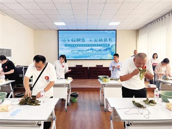 為豐富職工精神文化生活,營造文明和諧、健康向上的氛圍,端午節(jié)前夕,商水縣總工會、縣新時代文明實踐服務中心聯(lián)合舉辦“同享端午、共品粽香”主題活動。圖為選手進行吃粽子比賽。