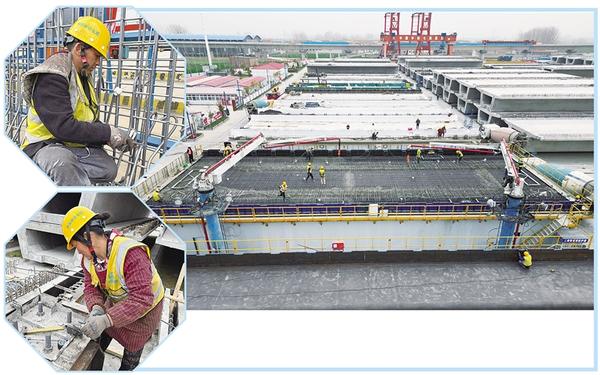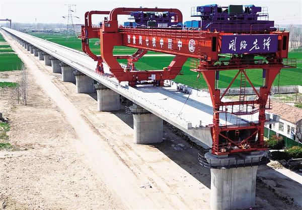 3月17日上午,中鐵七局的工人正在緊張施工。目前,平漯周高鐵項目快速推進,周口境內商周特大橋跨河流、國道、高速等連續(xù)梁施工進入加班加點搶工期階段,樁基、承臺、墩身施工接近尾聲,已鋪架箱梁90榀。