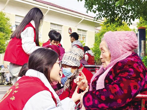3月15日,志愿者和老人拉家常。當日,河南科技職業(yè)大學組織青年志愿者走進周口市老年護理院,開展以“暖心敬老行,情滿夕陽紅”為主題的敬老愛老活動。