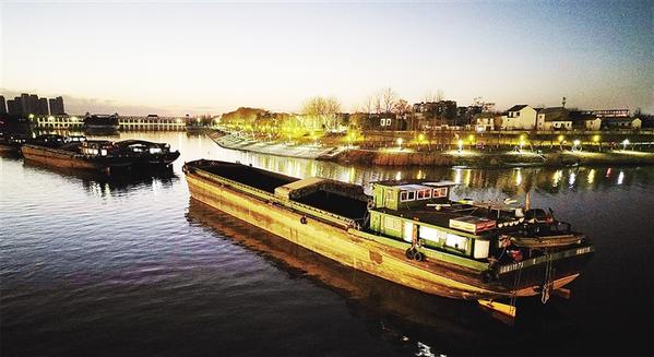 1月15日晚上,在中心城區(qū)三川交匯處,幾艘貨船停泊在沙潁河上。夜色、波光、船影和附近的大渡口、菩提門、周口大閘構成美侖美奐的風景。