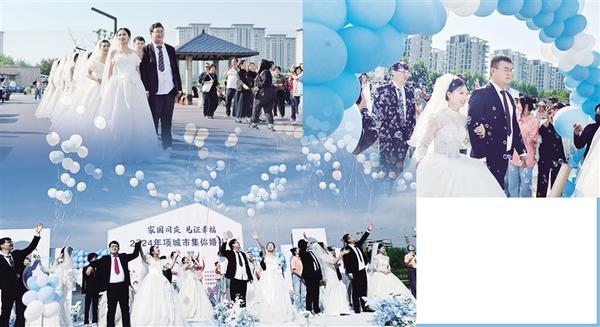 為慶祝新中國(guó)成立75周年,大力推進(jìn)移風(fēng)易俗,倡導(dǎo)新型婚育文化,9月24日,以“家國(guó)同慶、見(jiàn)證幸?!睘橹黝}的2024年項(xiàng)城市集體婚禮在該市吉祥湖公園舉行。當(dāng)天,來(lái)自不同行業(yè)、不同崗位的12對(duì)新人喜結(jié)連理,用實(shí)際行動(dòng)爭(zhēng)做文明新風(fēng)的倡導(dǎo)者、踐行者、推動(dòng)者。圖為集體婚禮現(xiàn)場(chǎng)。 ...[詳細(xì)]