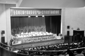 會議要求,對煙花爆竹領(lǐng)域安全生產(chǎn)要堅持集中排查和長期堅守相結(jié)合,這次集中排查要徹底澄清全縣煙花爆竹生產(chǎn)企業(yè)的底子,做到心中有數(shù)。把隱患消除在萌芽狀態(tài),堅決保證不再發(fā)生煙花爆竹安全生產(chǎn)事故。要把教育大多數(shù)與打擊個別非法生產(chǎn)相結(jié)合。對多數(shù)守法企業(yè)業(yè)主廣泛開展安全生產(chǎn)宣傳教育,同時,對心存僥幸心理的非法生產(chǎn)者,要從嚴(yán)、從快給予打擊,保障人民群眾生命財產(chǎn)安全,保證社會大局穩(wěn)定,著力打造平安淮陽、和諧淮陽。