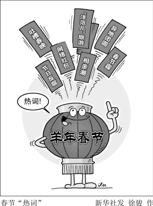 剛剛過去的羊年春節(jié)喜氣洋洋,看點(diǎn)多多:延續(xù)反腐高壓態(tài)勢,反腐相聲上了春晚,反腐動漫短片受熱捧,請客送禮的少了,清風(fēng)正氣得到弘揚(yáng);從“小眾試水”到“全民狂歡”,網(wǎng)絡(luò)紅包成為羊年春節(jié)的“標(biāo)簽”,為傳統(tǒng)年俗注入新活力;在這個春節(jié),人們還發(fā)現(xiàn),異地團(tuán)圓多了,旅游“爆棚”了,霧霾“爆表”了……