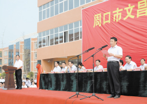 2012年,乘著周口市委“科教興周戰(zhàn)略”的東風,由周口市委、市政府、市東新區(qū)管委會傾力打造,投資3億元創(chuàng)辦的周口市文昌中學應(yīng)運而生。市委書記徐光親筆為該校題下“礪學弘文、昌達天下”的校訓。