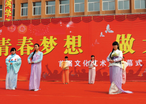 該校把特色教育作為發(fā)展的名片,推出“一班一品一特色”活動。學校建立以班級為單位的社團組織,并細分為體育類、舞蹈類、樂器類、美術(shù)類四大類別,共70個社團。比如:美工社團制作漢服進行表演,每一次都讓在場的觀眾潸然淚下,為自己是一個漢唐中華子孫而驕傲,為著漢唐服裝而自豪。學校出版了《求真大課堂》《走在成長的路上》《花季無悔》《中學生科技創(chuàng)作》《班主任德育思想錄》《國學之蘊》《家和萬事興》《共創(chuàng)一個夢 和韻文昌之家校共建》《“文昌杯”文明我先行 共筑一個夢》主題征文作文選等校本教材。為豐富校園文化生活,學校邀請中國政法大學的霍登科,歷史文化學者王少清,青少年心理教育專家張海選、萬禮彬,周口市中心醫(yī)院婦產(chǎn)科主任楊莉,河南國學院的施柳貞、王福琪、楊茹梅以及國內(nèi)外優(yōu)秀大學生對學生進行國學誦讀和教育、演講比賽、法制教育、夢想目標教育、青春期心理和生理教育等活動。在該校首屆“做大成教育 展青春夢想”文化藝術(shù)節(jié)活動中,有一項活動叫珍藏十年“心愿瓶”,當滿載學生夢想的心愿瓶準備珍藏時,晴天出現(xiàn)了彩虹,讓在場的領(lǐng)導(dǎo)、家長、學生很驚嘆,說文昌中學的學生目標遠大,定有大才出現(xiàn)。這些有意義的活動對廣大未成年人的身心健康起到了很好的促進作用。