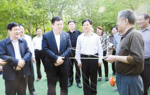 在沙潁河八一路橋,徐光被沙潁河兩岸正在開展的環(huán)境集中整治的火熱場景所吸引。近5000名機關(guān)干部職工頂著烈日,正在各自分包的路段緊張勞動。有的腰間系上繩子,來到陡峭的河堤下清理垃圾;有的在堤上清運垃圾;有的從河里提來水,認真地清洗線桿上的小廣告。徐光沿河而行,與正在參加義務(wù)勞動的機關(guān)干部親切交談?!澳銈兪悄膫€單位、負責的堤段有多少、清理的范圍是什么、大家對開展環(huán)境集中整治是否滿意?!毙旃鈫柕谜J真仔細?!皾M意,而且要全力參與。今天我們都是主動報名參加,環(huán)境好了我們大家都是受益者。”聽到大家的回答,徐光十分高興。他說,沙潁河是周口的母親河,一河穿城的美景是周口的獨特優(yōu)勢和城市名片。開展環(huán)境衛(wèi)生集中整治,是市委、市政府為民辦好事、辦實事的具體體現(xiàn),是展示周口良好形象的迫切需求。各相關(guān)單位要切實提高思想認識,迅速行動,按照整治要求,細化工作任務(wù)、落實工作責任、明確工作目標,做到有序推進,使之成為展示城市魅力的景觀帶、市民休閑健身的綠色長廊。要統(tǒng)一規(guī)劃、注重開發(fā)、加快建設(shè)、強化管理,進一步加大沙潁河城區(qū)段綜合整治力度,使之能夠更好地服務(wù)市民生活。
