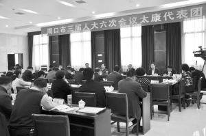 本報(bào)訊 (記者 劉俊濤 通訊員 高一麟 孟慶嵩 文/圖)4月18日,太康縣參加市“兩會(huì)”的代表們?cè)隈雎?tīng)過(guò)市長(zhǎng)劉繼標(biāo)所作的政府工作報(bào)告以后,在周口市迎賓館3號(hào)樓5樓會(huì)議室進(jìn)行審議。