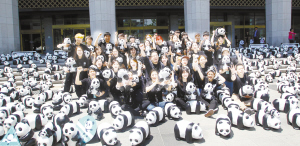 熊貓軍團(tuán)“占領(lǐng)”首爾 5月23日,在韓國首爾,展覽工作人員與紙制大熊貓合影。當(dāng)日,1600只紙制大熊貓?jiān)谖挥谑谞柺兄行牡氖雷谖幕瘯?huì)館前亮相。“紙制大熊貓世界之旅”活動(dòng)創(chuàng)辦于2008年,由世界自然基金會(huì)和法國藝術(shù)家保羅·格蘭金聯(lián)合發(fā)起,以回收的廢紙和雞蛋殼為材料,設(shè)計(jì)制作1600只形態(tài)各異、表情豐富的大熊貓,目的是推廣保護(hù)大熊貓和民眾的環(huán)保意識(shí)。新華社發(fā)