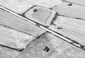 這是5月25日在江蘇省淮安市盱眙縣桂五鎮(zhèn)航拍的麥?zhǔn)宅F(xiàn)場。近日,我國夏糧主產(chǎn)區(qū)小麥作物自南向北陸續(xù)開鐮收割。