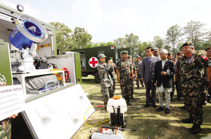 尼泊爾軍方25日在位于加德滿都的軍隊(duì)醫(yī)院大草坪舉行隆重交接儀式,感謝中國把兩套總價(jià)值5900萬元人民幣的野戰(zhàn)醫(yī)院設(shè)備贈予尼軍。