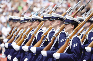 5月25日,在美國華盛頓憲法大道,儀仗隊(duì)士兵參加陣亡將士紀(jì)念日游行。