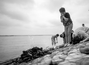 清晨5點(diǎn)多開始,長(zhǎng)江江面下起淅淅瀝瀝的小雨,救援工作仍在緊張進(jìn)行。為了哀悼逝者,參與救援的人員在起吊船上搭起一個(gè)簡(jiǎn)易祭臺(tái),上面擺滿蠟燭、香、黃色的菊花。8時(shí)50分許,江面船舶列好隊(duì),靜靜寄托哀思。